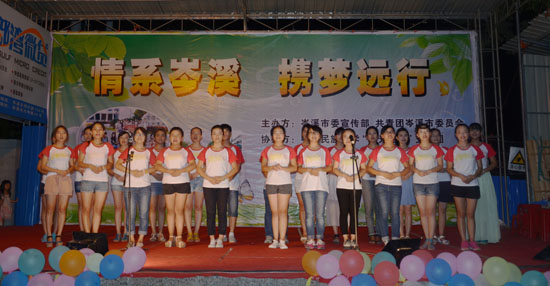 8月5日晚,廣西岑溪市甘沖社區(qū)臨時搭建了一個舞臺,周圍近千名觀眾形成了一堵堵“人墻”,數(shù)百輛車停留在舞臺周圍的空地,甚至有不少遠(yuǎn)道而來的觀眾。被大家團(tuán)團(tuán)圍住的是場晚會,演員們來自中南民族大學(xué)“陽光啟夢”支教團(tuán)。岑溪市市委宣傳部副部長梁新民、團(tuán)市委副書記歐廣明等嘉賓也到場觀看了演出。