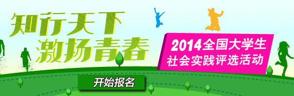 以學習宣傳習近平總書記2014年“五四講話”精神為契機,以引導青年學生培育和踐行社會主義核心價值觀為重點,引導廣大青年學生深入社會、了解國情、接受鍛煉,堅定為實現(xiàn)中國夢努力奮斗的理想信念,人民網(wǎng)將舉辦“2014全國大學生社會實踐評選”活動。本活動以“知行天下,激揚青春”為主題,面向全國大學生征集暑期社會實踐成果報告,通過展示和評選的過程,對內(nèi)容充實、成果突出、事跡典型的團隊或個人進行宣傳和表彰。