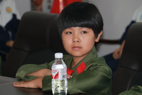 15日上午,著名黨史專家薛慶超在遼寧本溪縣為中小學(xué)生上生動抗戰(zhàn)歷史課。圖為課堂上認(rèn)真聽講的小學(xué)生。(陸加杰 攝)