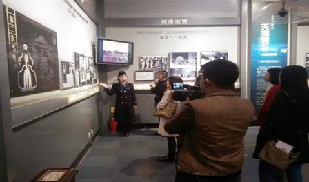 人民網(wǎng)“尋找歷史記憶 緬懷抗戰(zhàn)英烈”采訪團(tuán)成員在長(zhǎng)春偽滿皇宮博物院采訪。
