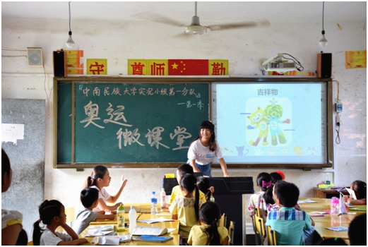中南民族大學(xué)的實(shí)況小組志愿服務(wù)隊(duì)到貴州從江縣貫洞鎮(zhèn)龍圖小學(xué)支教,針對(duì)當(dāng)?shù)亓羰貎和狭艘惶镁实膴W運(yùn)微課堂,并組織開(kāi)展了龍圖小學(xué)趣味運(yùn)動(dòng)會(huì),將奧運(yùn)理論與實(shí)踐相結(jié)合,傳遞奧運(yùn)精神。