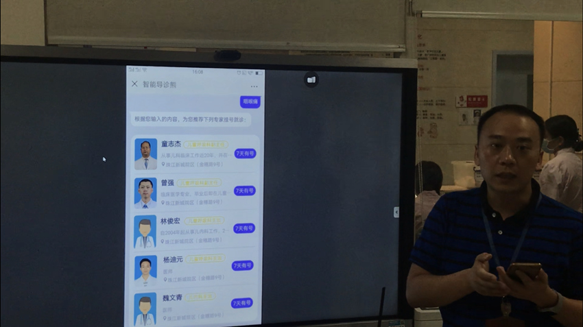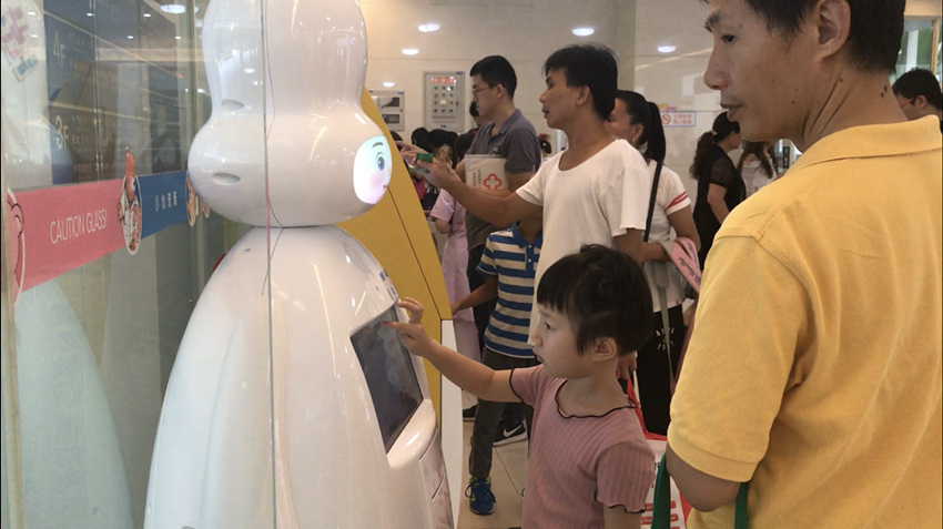 在廣州市婦女兒童醫(yī)療中心,與手機(jī)客戶端同步的導(dǎo)診機(jī)器人“咪姆熊”,還幫助患者導(dǎo)航至醫(yī)院的每個位置;根據(jù)指令,物流機(jī)器人“諾亞”可以自行乘坐電梯,將醫(yī)護(hù)人員所需藥品送達(dá)指定科室;新一代AI平臺能讀X光片和超聲數(shù)據(jù),還能在30秒內(nèi)診斷出2種眼科疾病......