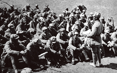 延安整風(fēng)期間我們黨強(qiáng)調(diào),反對主觀主義以整頓學(xué)風(fēng),反對宗派主義以整頓黨風(fēng),反對黨八股以整頓文風(fēng)。圖為整風(fēng)運(yùn)動時(shí),我軍某部連隊(duì)指導(dǎo)員在給戰(zhàn)士們講課。