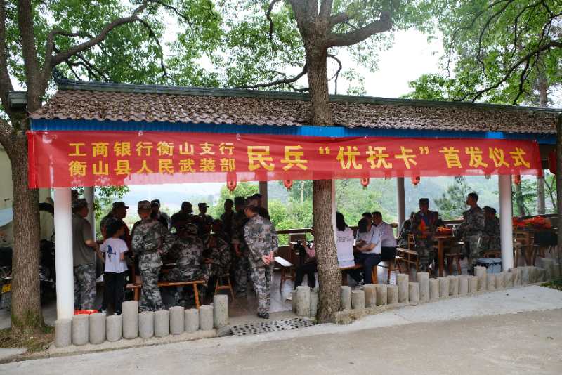 前不久,衡山縣人武部與中國工商銀行衡山支行舉行民兵“優(yōu)撫卡”首發(fā)儀式,給正在參加防汛演練的30余名基干民兵送去了一份特別的小禮物——“隨軍行擁軍優(yōu)撫卡”。 這張卡,是今年年初該縣人武部主動(dòng)與銀行進(jìn)行溝通協(xié)調(diào)后,專門設(shè)計(jì)制作的一張融身份識(shí)別功能與金融服務(wù)功能于一體的民兵優(yōu)撫卡。卡的正面背景圖案是一位身著軍裝的民兵照片,并印有“隨軍行擁軍優(yōu)撫卡”字樣。