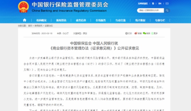 《商業(yè)銀行資本管理辦法(征求意見稿)》 中國銀保監(jiān)會官網(wǎng)截圖